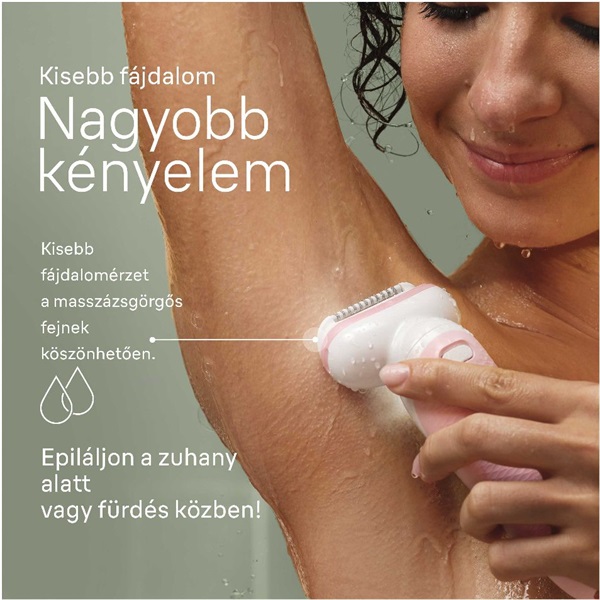 Wet & Dry: 100%-ban vízálló. Kialakításának köszönhetően csökkenti a fájdalomérzetet. Kíméletes epilálás fürdés vagy zuhanyzás közben.