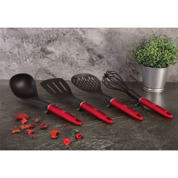 A Berlinger Haus BH/6235N burgundi 4 részes konyhai eszközkészlet a Metallic Line Burgundy Edition család tagjaként egy elegáns és praktikus választás minden konyhába. A készlet funkcionális eszközei és a környezetbarát anyagok kombinációja ideális választássá teszik mindennapi konyhai feladatokhoz.