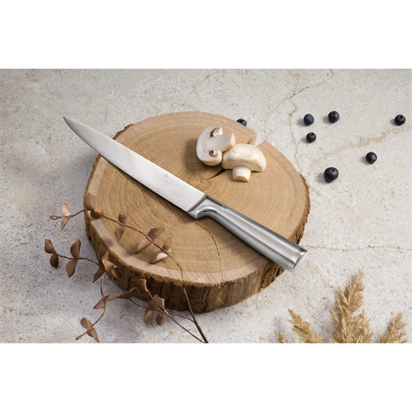 Ez a szeletelő kés a funkcionalitás és az esztétikum tökéletes egyensúlyát nyújtja, így nemcsak a munkát könnyíti meg, hanem a konyha megjelenését is feldobja.