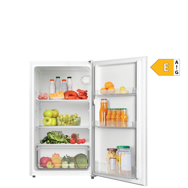 A hűtőszekrény térfogata 93 l, összesen három üvegpolc biztosítja az élelmiszerek frissességét és meghosszabbítja használatuk idejét, míg a hűtőszekrény alján található fiók lehetővé teszi a friss gyümölcsök és zöldségek elkülönítését a többitől. étel.