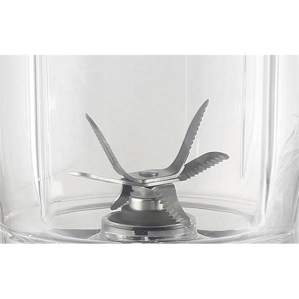 A rozsdamentes acél jégzúzó penge soha nem okoz csalódást. A nagy fordulatszám szabálytalan keverést eredményez, amely a speciálisan kialakított Tritan üveggel együtt lefelé kényszeríti az összetevőket és tökéletesen összekeveri azokat.