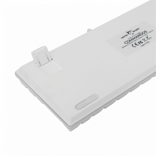 White Sharkk COMMANDOS, GK-2106W/BL-HU fehér mechanikus, magyar gamer billentyűzet 88 gomb, blue switch. Rainbow háttérvilágítás. ag cikkszám:W029163,megnevezés:White Shark Commandos fehér mechanikus magyar gamer billentyűzet,típus:GK-2106W/BL-HU,leírás:vezetékes fehér mechanikus gamer billetyűzet, kék kapcsolók,gombok száma:88,billentyűzet kiosztása:magyar,gomb élettartam:több mint 50 millió leütés,tartalék gomb:nincs,szín:fehér,leütési súly:60 g,világítás:Rainbow, állítható fényeffektek,csatlakozás:USB 2.0,vezeték hossz:1.8 m,méret355 x 135 x 20 mm,súly: 650 g