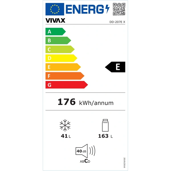A VIVAX DD-207E X hűtő-fagyasztó az átlagos család minden igényét kielégíti. A legtöbb családnak elegendő egy nagyméretű hűtőszekrény külön fagyasztóval, összesen 204 l kapacitással. Amellett, hogy takarékos az energiafogyasztásban, nagyon kevés helyet foglal el. 163 l-es hűtőszekrény térfogata, összesen három üvegpolc biztosítja az élelmiszerek frissességét és meghosszabbítja használatuk idejét, míg a hűtőszekrény alján található fiók lehetővé teszi a friss gyümölcsök és zöldségek elkülönítését a többi élelmiszertől.