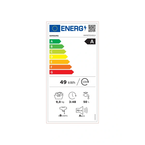 Samsung WW90T654DLH/S6 fehér, elöltöltős, max.1400ford., 9 kg, mosógép (Újszerű)